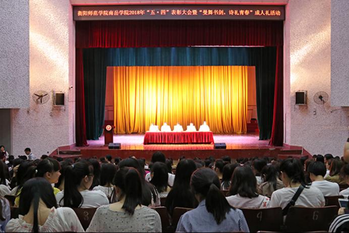 5月3日晚,万博体育在西校区排演厅隆重举行了2018年“五·四”表彰大会暨“曼舞书剑,诗礼青春”成人礼活动。学院党总支书记匡云山、院长王芳宇、党总支副书记周华、副院长蒋琛、团委书记肖炜和各团总支辅导员老师以及青年学生代表共800余人参加了本次活动。活动由党总支副书记周华主持。