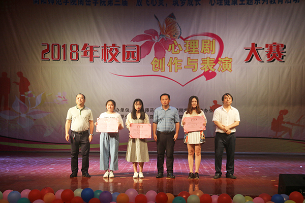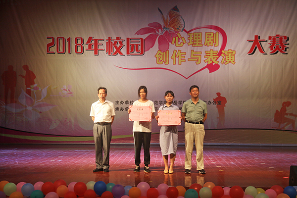 本次校园心理创作与表演大赛以“放飞心灵,筑梦成长”为主题,通过初赛、复赛等重重选拔,共有9个剧目晋级决赛。在各具特色的表演中,一波三折的剧情安排展现了心理剧独有的魅力与风采,演员们精彩绝伦的表演引起观众阵阵喝彩,一些观众还被故事情节感动的潸然泪下。最终经过激烈角逐,文科综合管理办的《陪伴》和《起风了》 脱颖而出,荣获本次心理剧大赛决赛的一等奖;理科综合管理办的《313的故事》、《心的距离》,外语管理办的《拥抱阳光》荣获二等奖;经法与城旅管理办的《天天好心情》、理科综合管理办的《成长》、外语管理办的《“语”众不同》、文科综合管理办的《救赎》荣获三等奖。