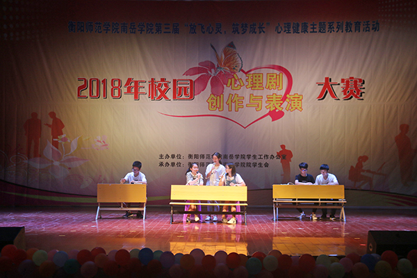 5月30日晚,南岳学院2018年心理剧创作与表演大赛决赛在西校区排演厅隆重举行。院党总支书记匡云山、院长王芳宇、党总支副书记周华、副院长宋毅军、蒋琛、校大学生心理咨询中心吴贞老师和院学工办老师以及近千名同学出席了本次活动。