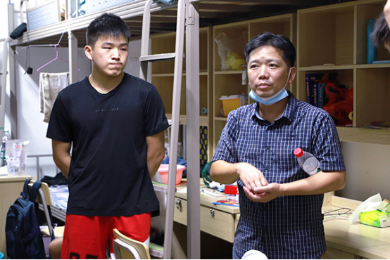 邹书记详细了解新生的衣食住行,叮嘱同学们做好疫情防护,积极配合学校疫情防控工作,同学们倍感亲切和温暖。同时他向新生提出三点建议:第一,尽快适应环境、融入大学生活,做好大学学习规划;第二,保护自身安全、提高防范意识,有困难及时向辅导员反映;第三,强身健体、提高素质,保持积极向上的状态。