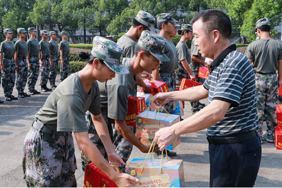 领导们向承训教官们致以深切谢意和问候,对已经取得的军训阶段性成果予以充分肯定,同时希望军训教官能够发扬人民子弟兵爱党爱国、不怕吃苦、能打胜仗的优良作风,培养新生的坚定意志和坚韧毅力,指导和帮助他们打造铁的纪律、磨炼钢的意志。