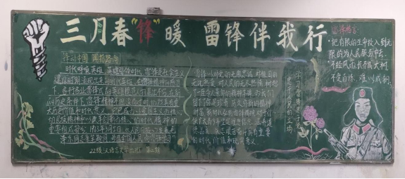 为响应习近平总书记“弘扬雷锋精神”号召,发扬雷锋精神对广大学子的榜样作用和引导作用,文科综合管理办特举办以“爱满衡师,向雷锋同志学习”为主题的黑板报评选活动。