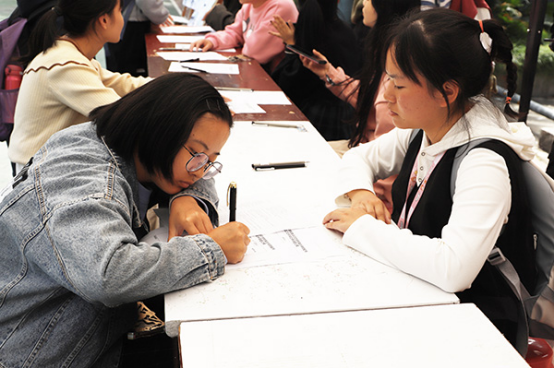 同学正在填写报名表