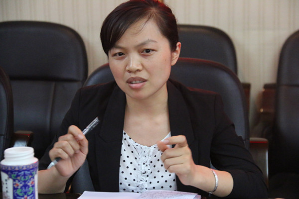 图为王淑慧科长解答学生问题