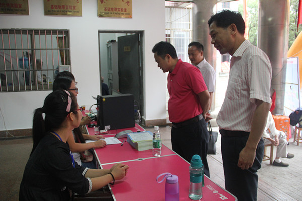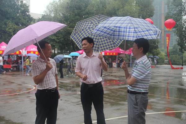 上午10时许,衡阳师范学院校长皮修平、副校长张登玉,人事处处长陈敏,万博体育党总支书记高峰、院长邓双喜、党总支副书记林琼等领导冒雨亲临万博体育迎新现场慰问迎新工作人员,并对万博体育迎新工作进行详细询问与指导。