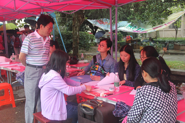 数学系的工作人员朱伟高兴地说道:“以前是学姐学长帮助我们入学报到,今年,我也想以学长的身份给学弟学妹们提供力所能及的帮助,这是一种爱的传递。”他们用“一站到底式”的陪同,让新生们感受到学校像家般温暖。家长们也说,学校的安排很合理,也很人性化,给孩子们带来了诸多便利。