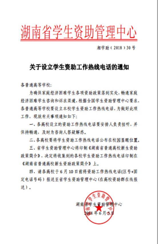 学生资助工作热线电话